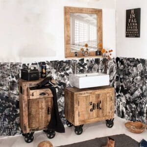 - Industrial: Badmöbel im Industrial Style verbinden rohe Materialien wie Holz, Metall und Beton zu einem urbanen und modernen Look.