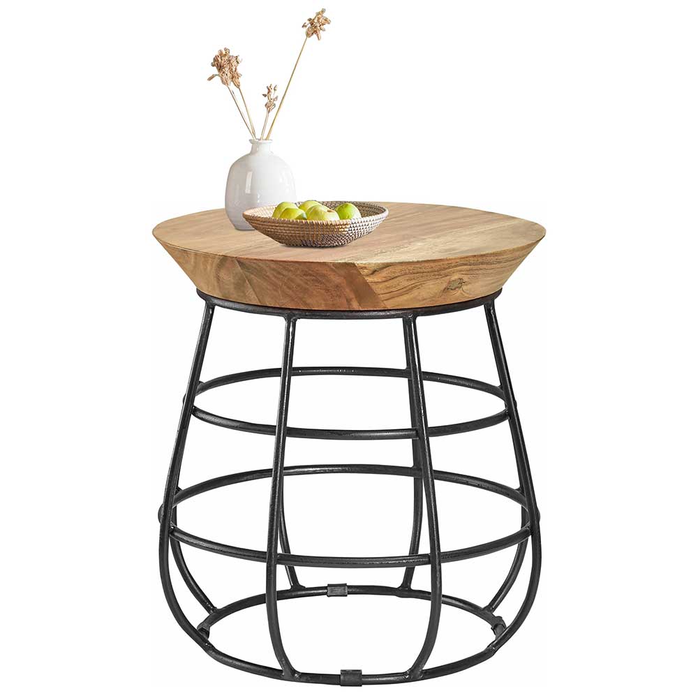Design Beistelltisch aus Mangobaum Massivholz mit Draht-Gestell aus Eisen – Ein Hauch von Natur und Moderne für Ihr Zuhause