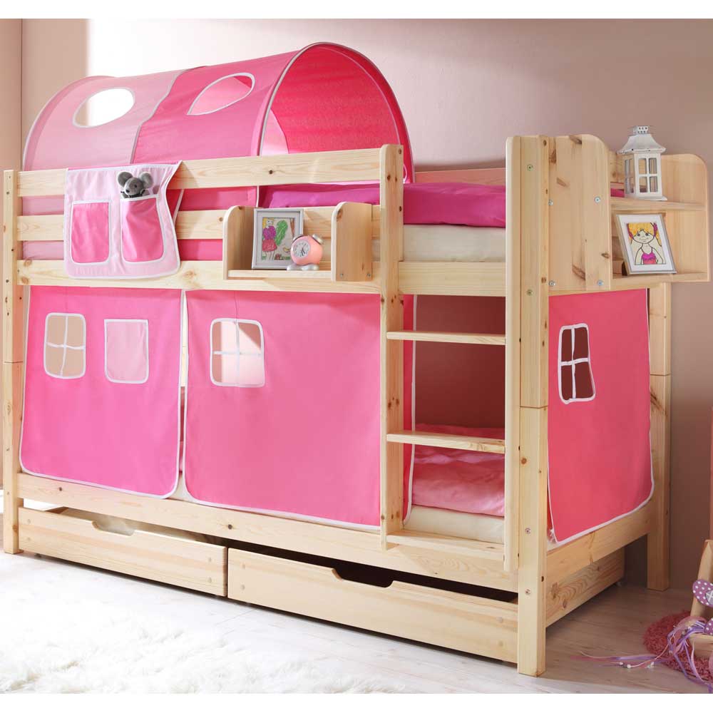 Kinderetagenbett mit rosa Vorhängen: Ein Traum in Kiefer Massivholz