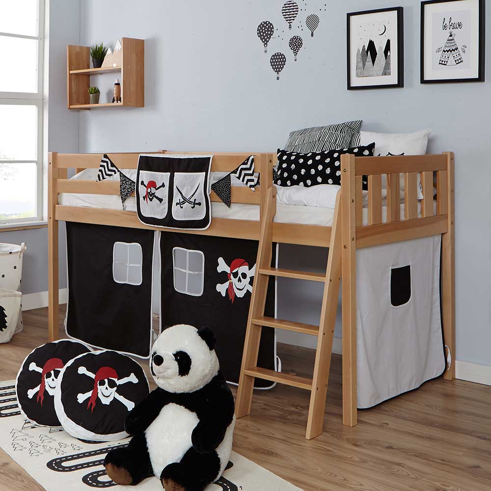 Ahoi, kleine Seeräuber! Das Kinderhochbett aus Buche Massivholz mit Piraten-Motiv – Ein Abenteuerland zum Schlafen und Spielen