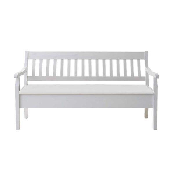 Die weiße Lackierung verleiht der Bank einen frischen und modernen Look, der sich harmonisch in jede Einrichtung einfügt. Gleichzeitig schützt sie das Holz vor äußeren Einflüssen und macht die Bank besonders pflegeleicht. Ein feuchtes Tuch genügt, um Staub und Schmutz zu entfernen.