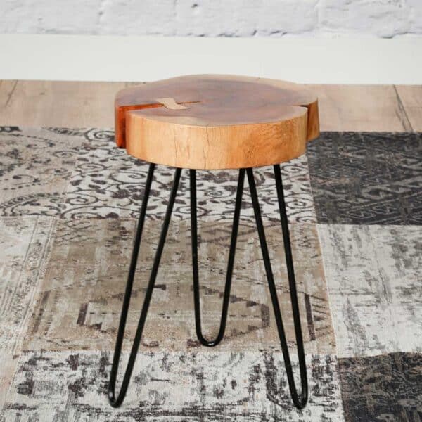 Massiver Akazienholztisch mit modernem Dreifußgestell – Ein Statement für Ihr Zuhause