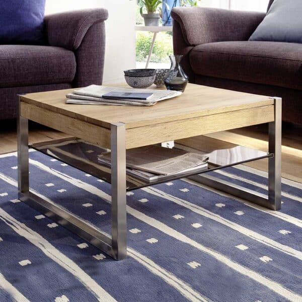 Quadratischer Couchtisch aus Eiche Massivholz, Glas & Metall: Ein Statement für Ihr Wohnzimmer
