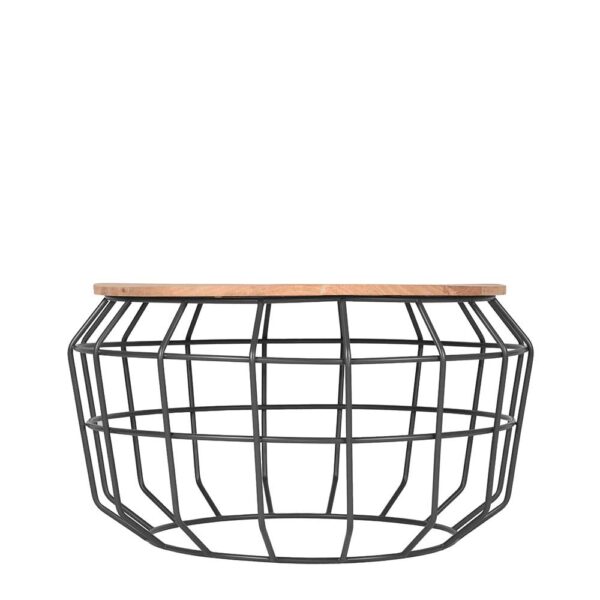 Das filigrane Drahtgestell aus robustem Metall bildet einen spannenden Kontrast zur massiven Holzplatte. Die offene Struktur des Gestells verleiht dem Tisch eine gewisse Leichtigkeit und lässt ihn trotz seiner soliden Bauweise nicht wuchtig wirken. Die schwarze Lackierung des Metalls unterstreicht den modernen Industrial-Look und macht den Tisch zu einem echten Hingucker. Durch die sorgfältige Verarbeitung ist das Metallgestell stabil und langlebig, so dass Sie lange Freude an Ihrem neuen Couchtisch haben werden.