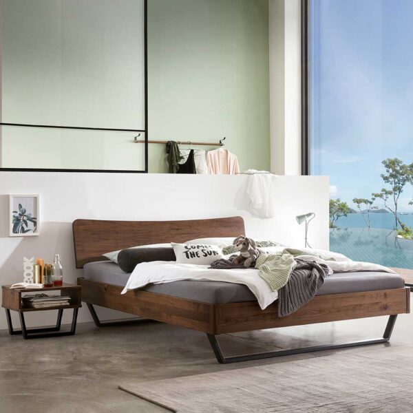 Das tiefe Bettgestell aus Nussbaum Massivholz und Stahl: Wo industrielle Eleganz auf natürliche Wärme trifft