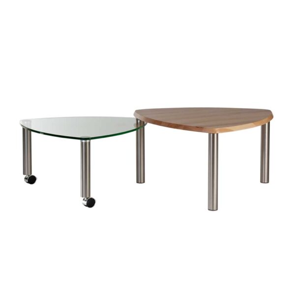 Der Wohnzimmertisch wird standardmäßig mit Rollen geliefert. Eine Variante ohne Rollen ist derzeit leider nicht verfügbar.